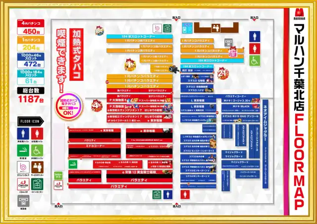 [4円パチ]538台 [1円パチ]187台 [1000円/46枚スロ]434台 [5.43円スロ]24台 |