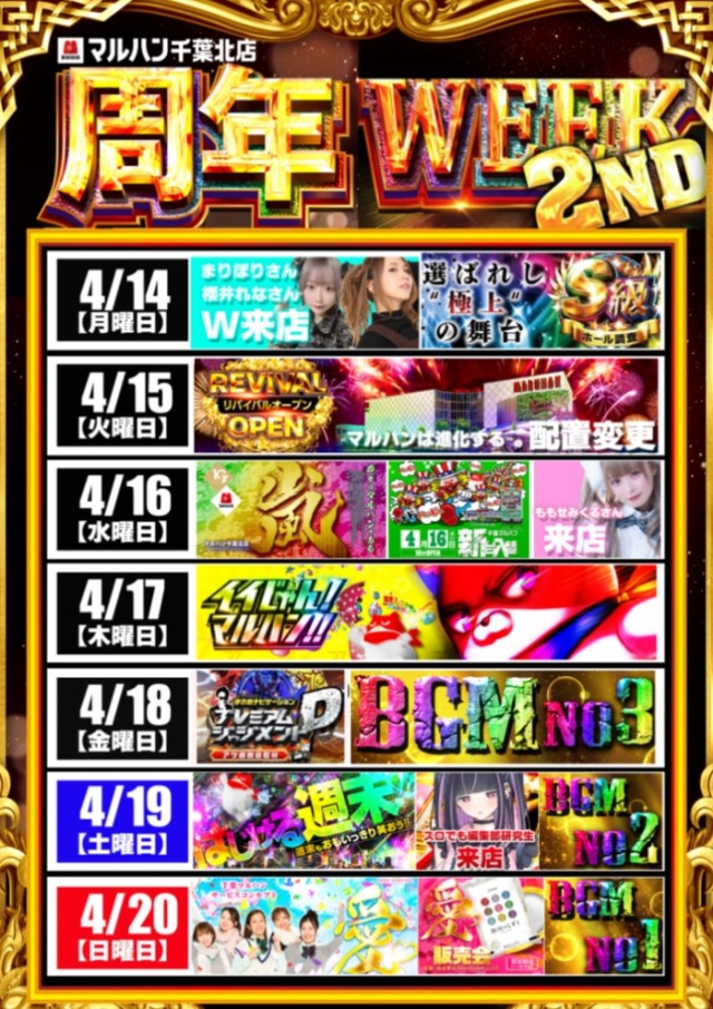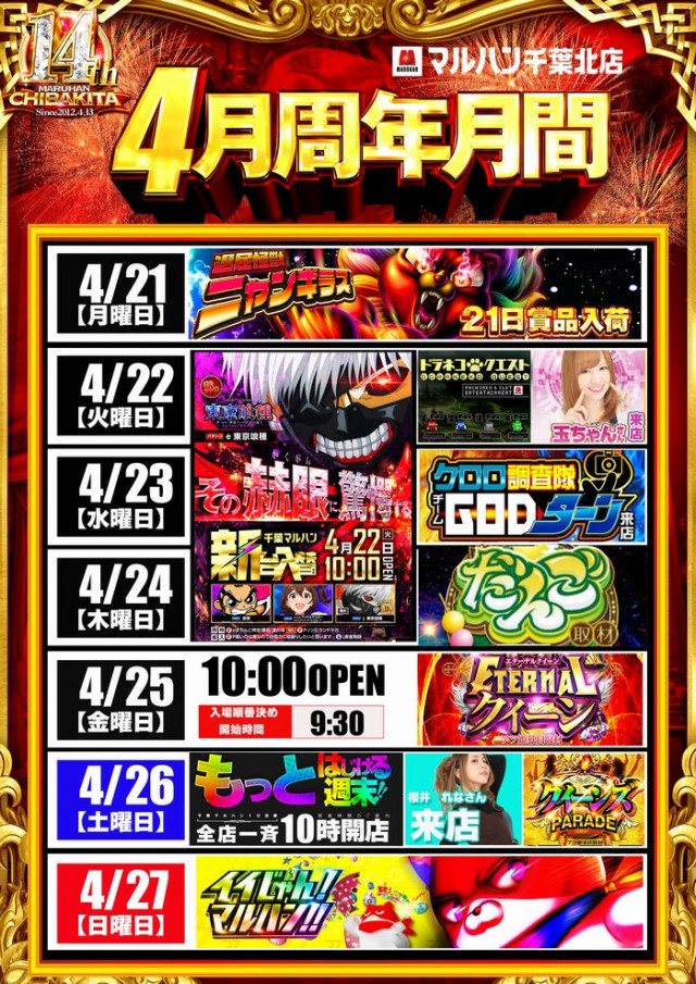 4月7日(木)4月新体制の千葉マルハンに大注目‼🌈
