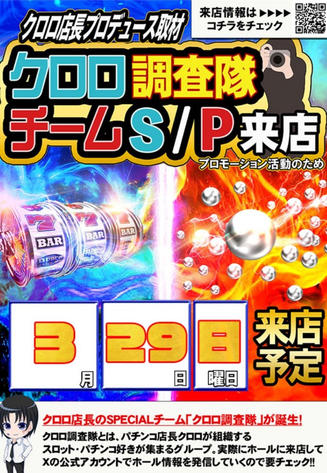 3月29日(日)朝10時オープン!クロロ調査隊チームSP来襲
