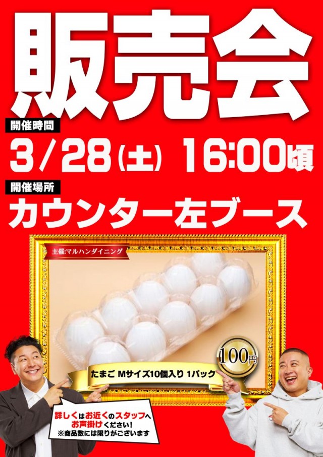 3月28日(土)朝10時オープン!神の子ホール調査×卵販売会