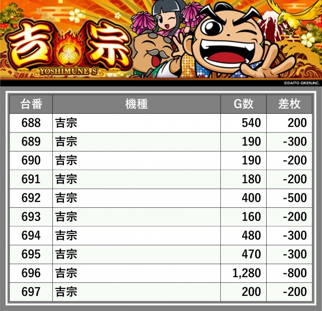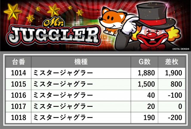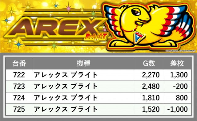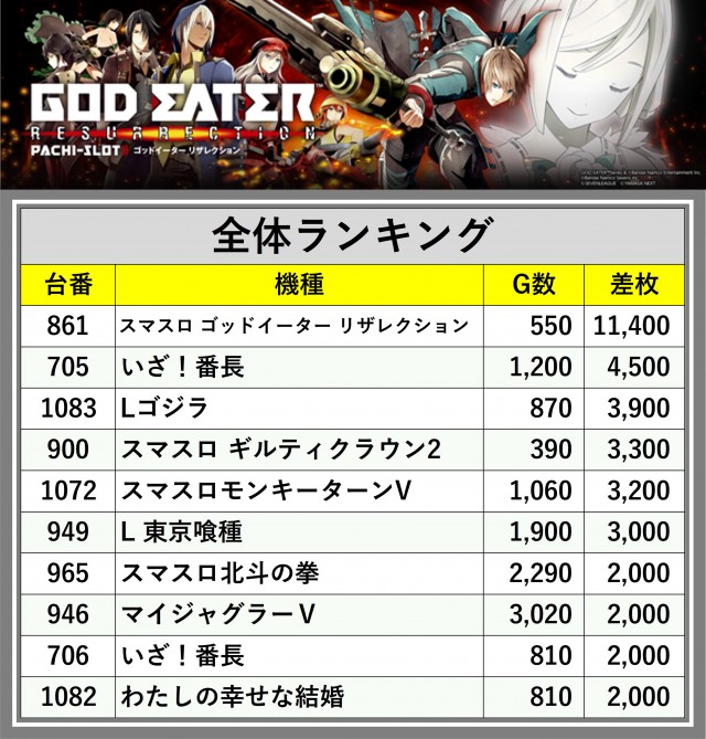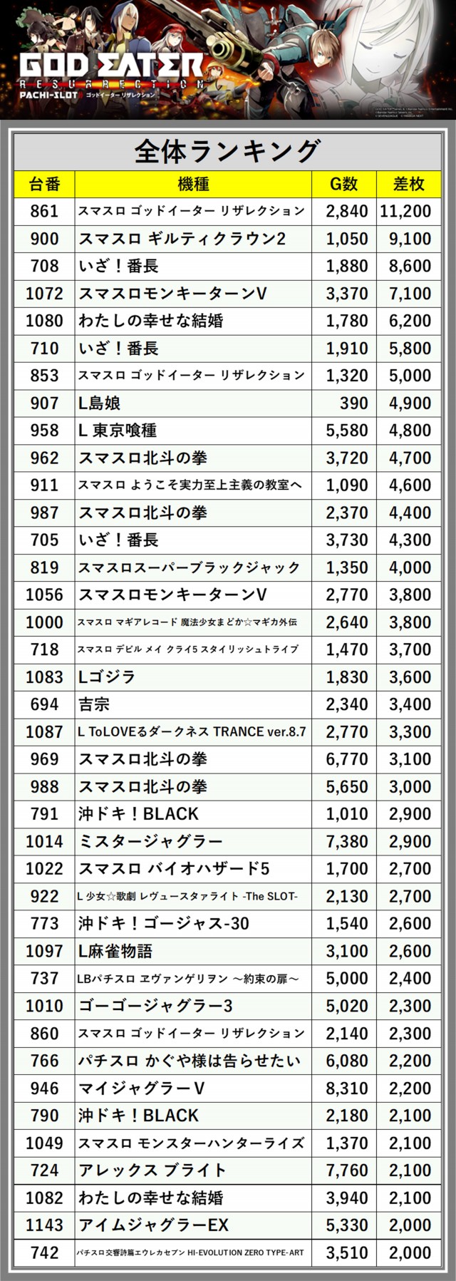厳選された取材対象機種をはじめ、その他スロット全体から好記録が飛び出した!プレイヤーが楽しんだ1日を下記データにて振り返ってみて欲しい。