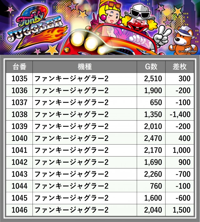 厳選された取材対象機種をはじめ、その他スロット全体から好記録が飛び出した!プレイヤーが楽しんだ1日を下記データにて振り返ってみて欲しい。
