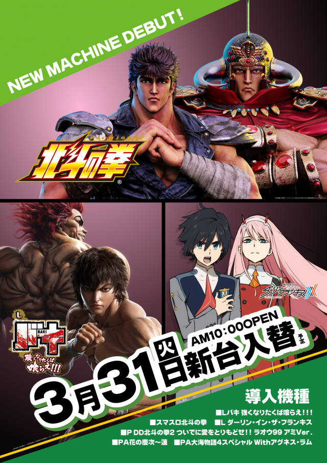 3/31(火)朝10時オープン★新台入替★