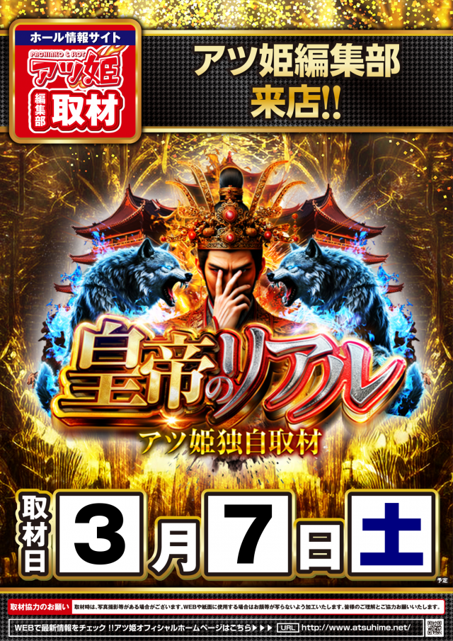 3月7日(土)当店初取材【皇帝のリアル】