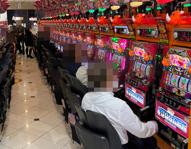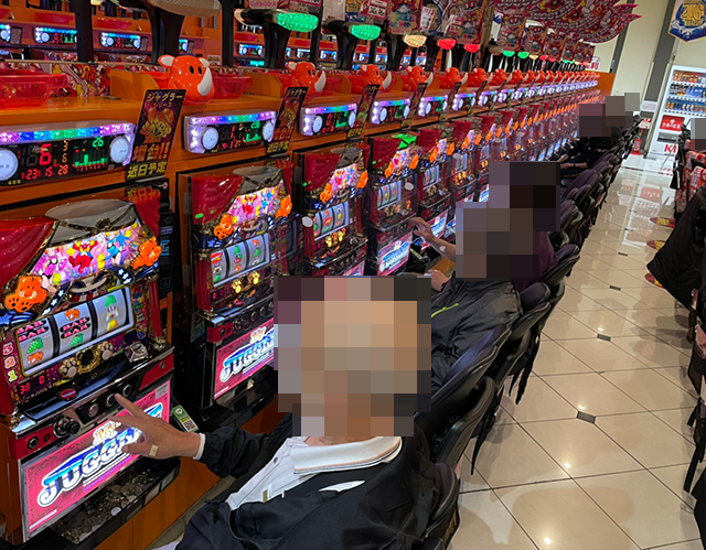 遊技を満喫しているといった姿が目立ち、楽しげな光景が広がっていた『マイジャグラーV』。