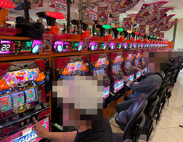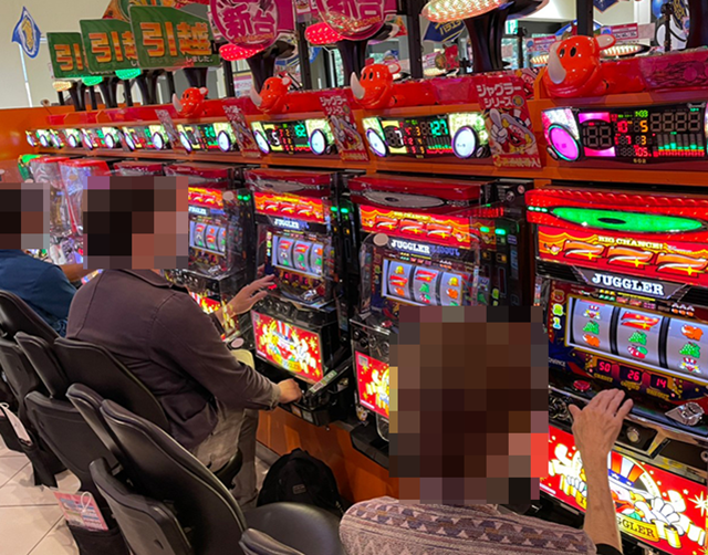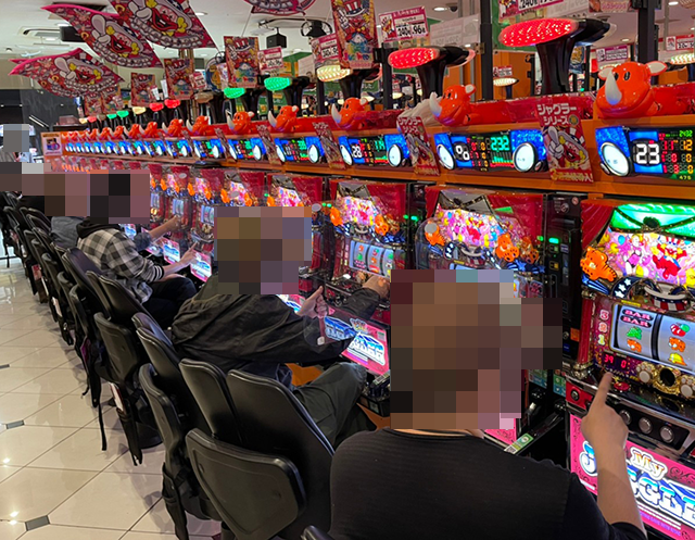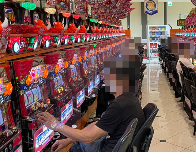 遊技を満喫しているようなプレイヤーの姿は、パチスロ全体でみても存在感があった。