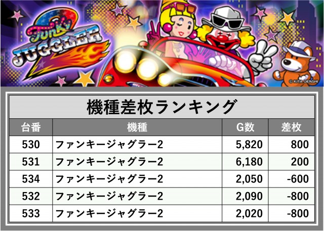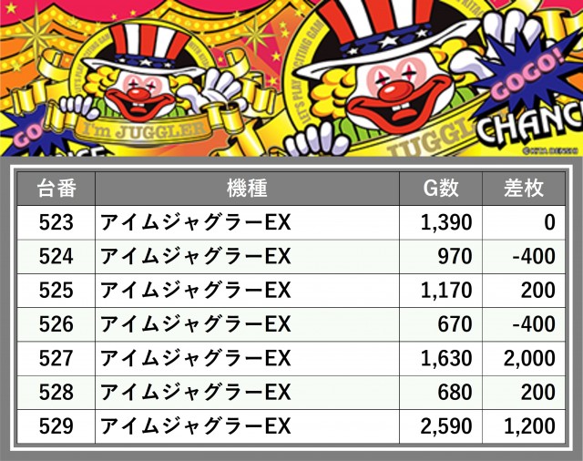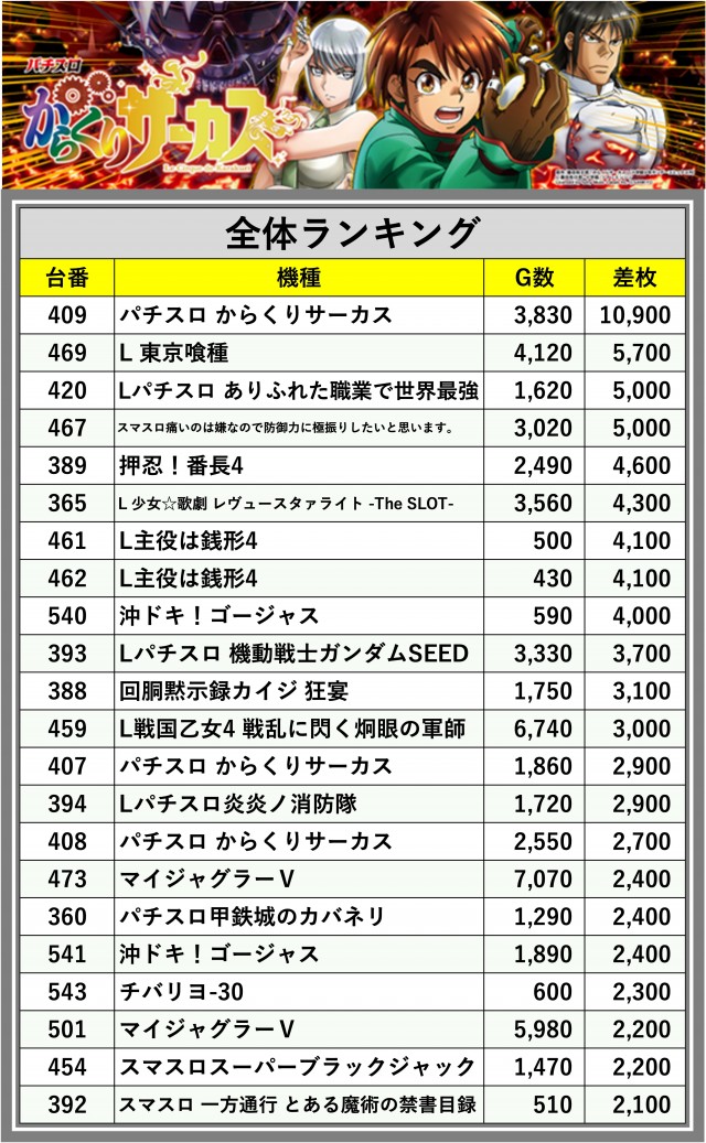 厳選された取材対象機種をはじめ、その他スロット全体から好記録が飛び出した!プレイヤーが楽しんだ1日を下記データにて振り返ってみて欲しい。