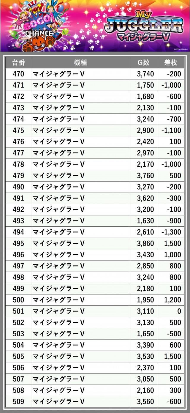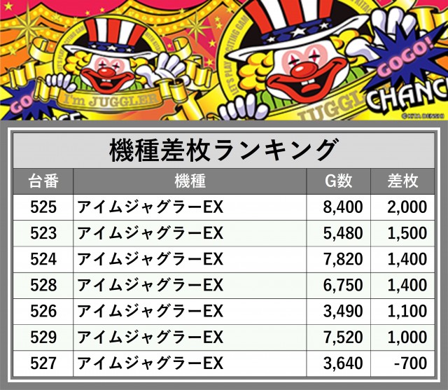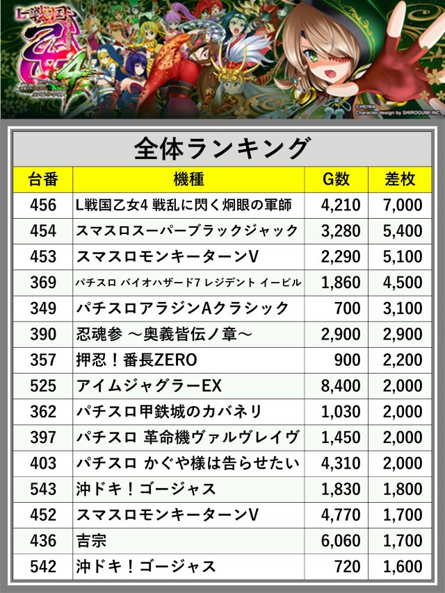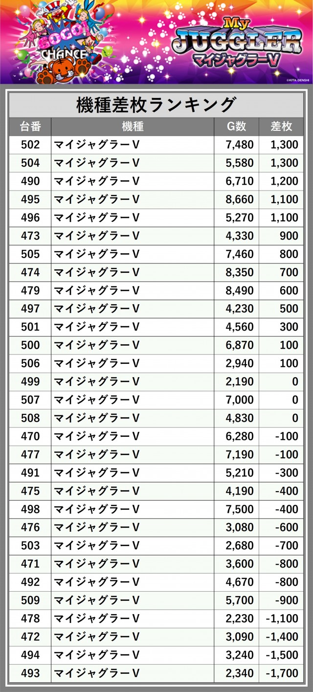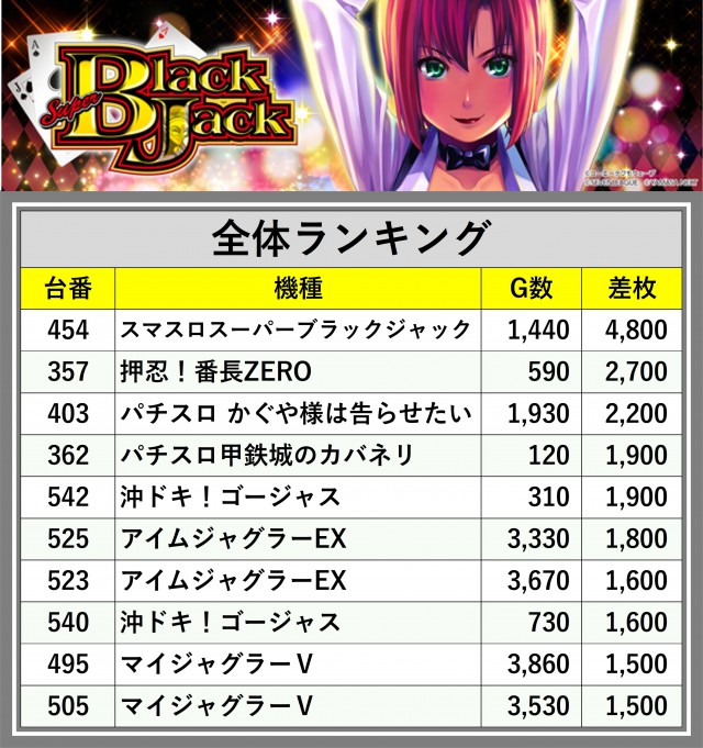 ※差枚数順に掲載しています