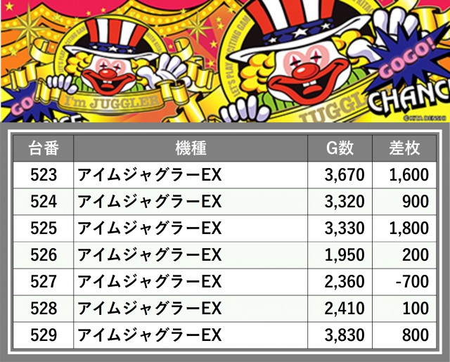 厳選された取材対象機種をはじめ、その他スロット全体から好記録が飛び出した!プレイヤーが楽しんだ1日を下記データにて振り返ってみて欲しい。
