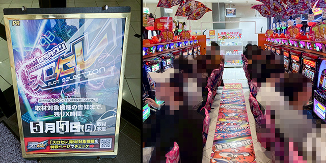 5月5日(月)アラジン若松店にて、DMMぱちタウンの新感覚取材「スロセレ」を実施。