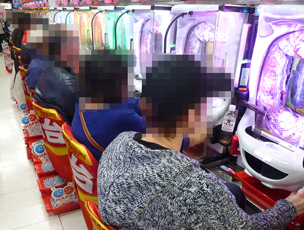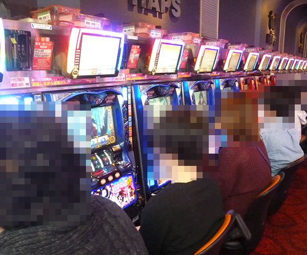 午後のパチスロで楽しげな雰囲気を感じられたのが、「バジリスク~甲賀忍法帖~絆」や「ミリオンゴッド-神々の凱旋-」などのAT・ART機。機種の性能を最大限まで引き出しているといったプレイヤーもおり、満足度の高さが伝わってきた。