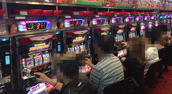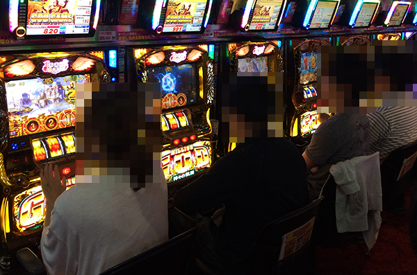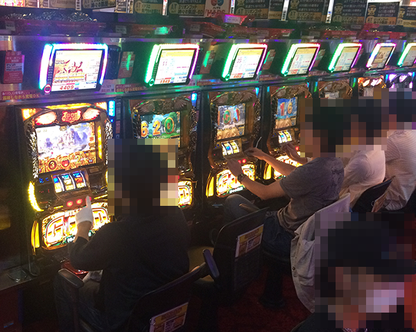 15時をまわった頃の20円パチスロでは、「ミリオンゴッド-神々の凱旋-」と「沖ドキ!トロピカル」が盛況。遊技内容に満足しているためか、プレイヤーたちは満面の笑みを浮かべていた。