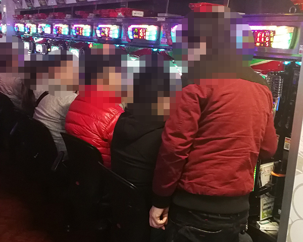 16時頃のパチスロで、ひときわ盛り上がっていた「沖ドキ!」と「沖ドキ!トロピカル」!! プレイヤーたちの満足そうな表情は、活気の大きさを表現しているようであった。