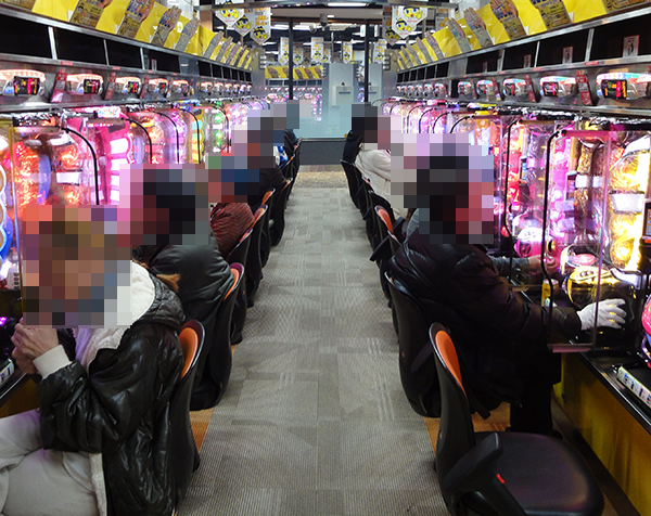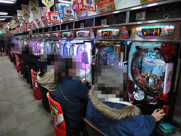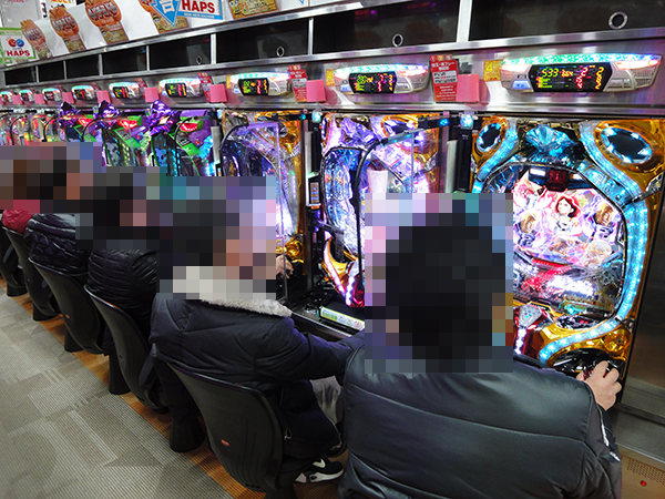 17時頃の4円パチンコをみると、「CRフィーバー機動戦士Zガンダム」や新台の「CR彼岸島」がファンタスティックな状況! プレイヤーたちがみせる見事なパフォーマンスに、思わず拍手をおくりそうになった。