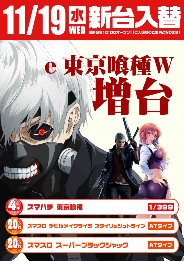 新台入替!e東京喰種増台!Lデビルメイクライ5、SBJ導入