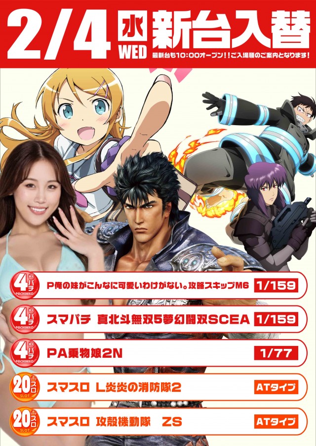新台入替10時OPEN!L炎炎2 L攻殻機動隊他最新台導入!