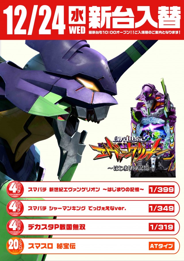 新台入替10時OPEN!スマパチエヴァ スマスロ秘宝伝導入