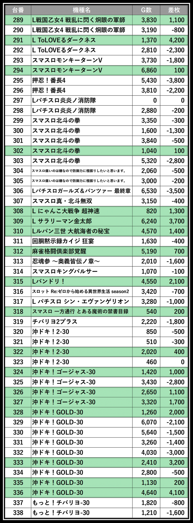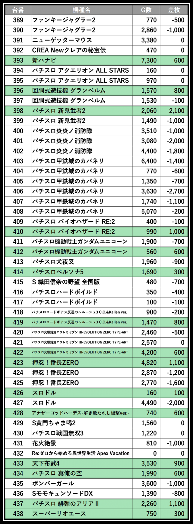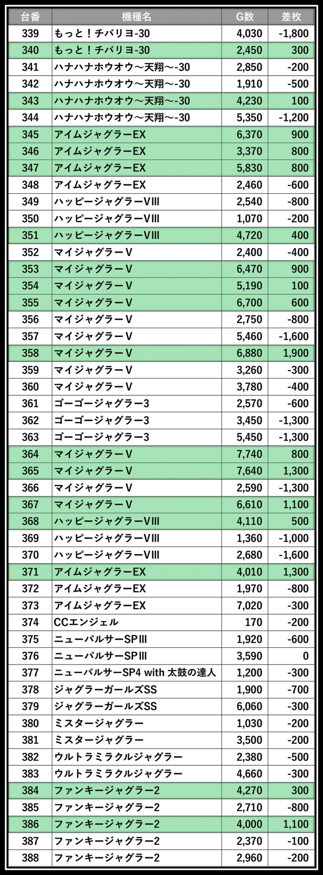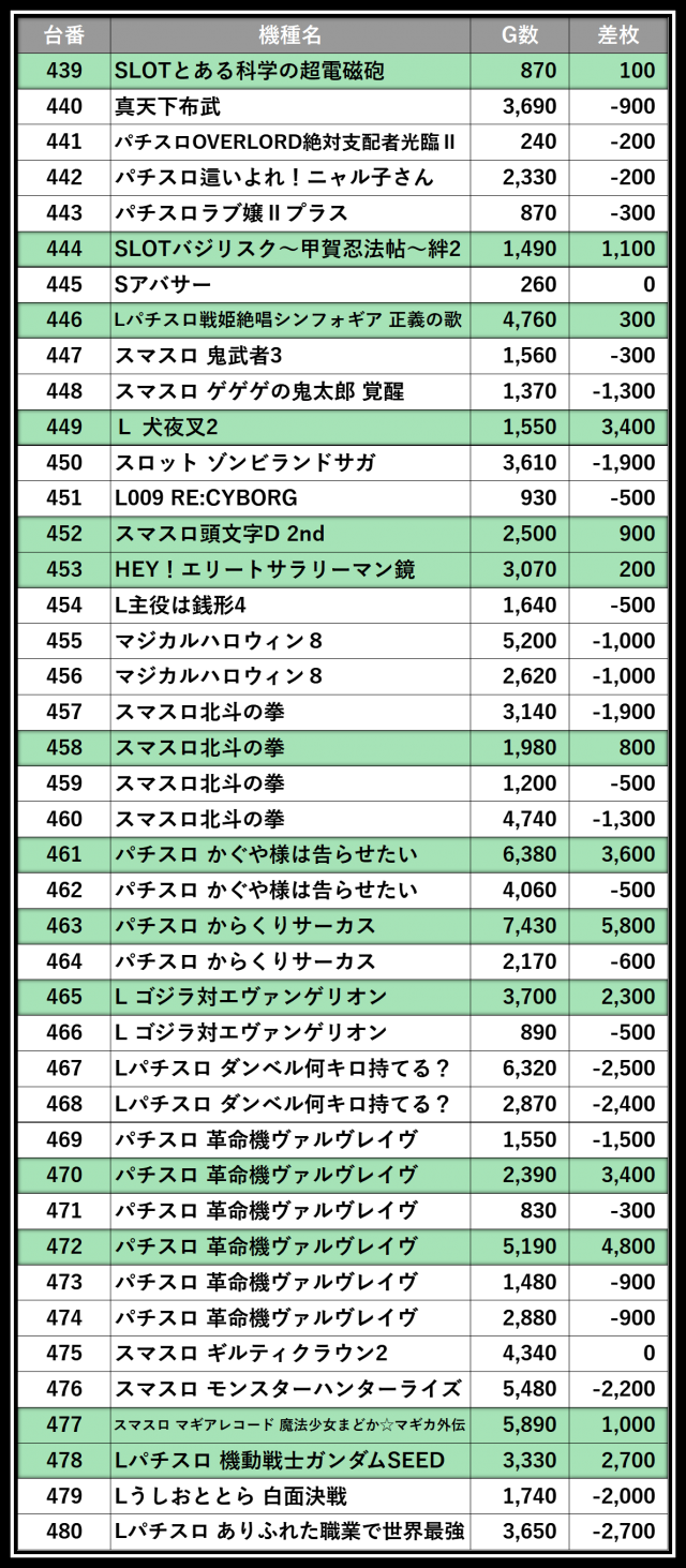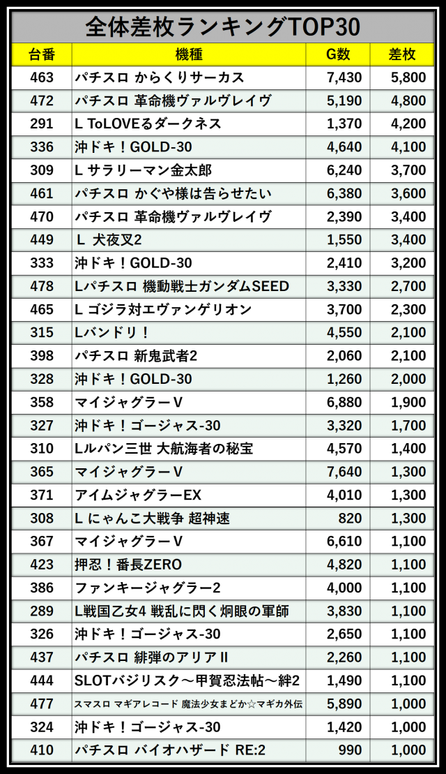 ※差枚数順に掲載しています
