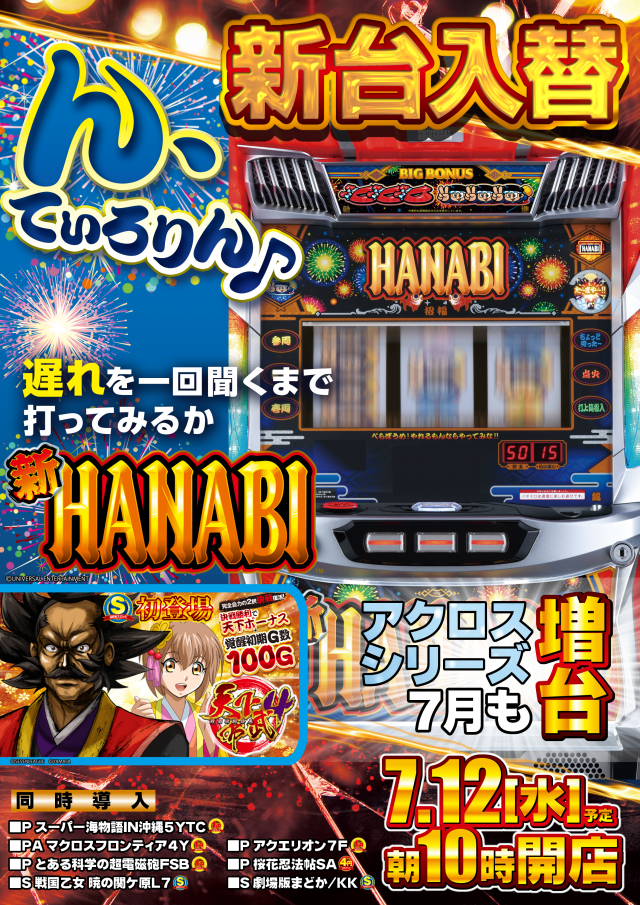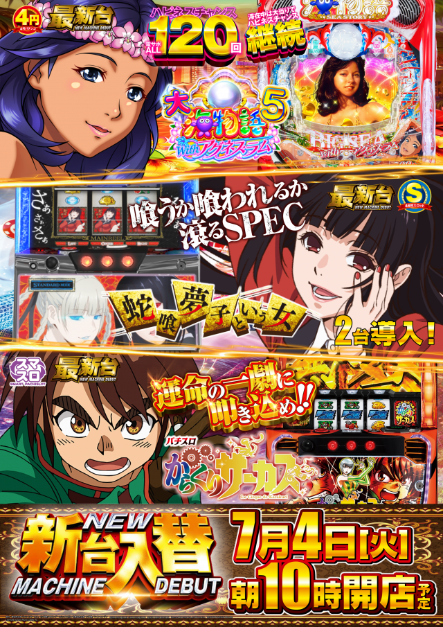 7月21日(木)新台入替 パチンコ・スロットコーナー最新台!