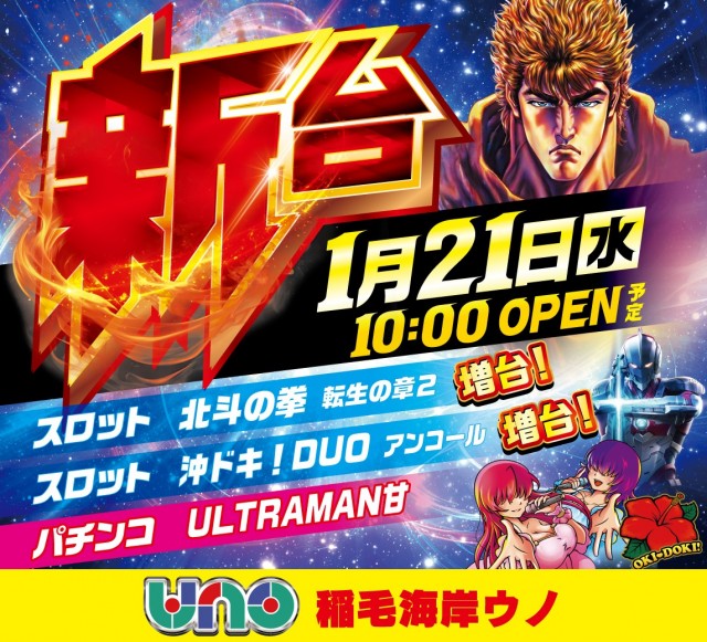 【ド派手にいくぜ!】1月21日(水)新台登場!10時開店!