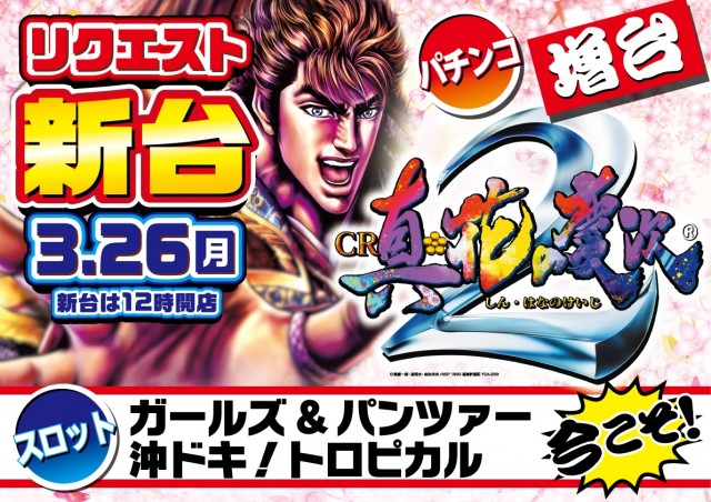 パチンコ: 500円/125玉 2パチ: 500円/250玉 パチスロ: 1000円/46枚 |