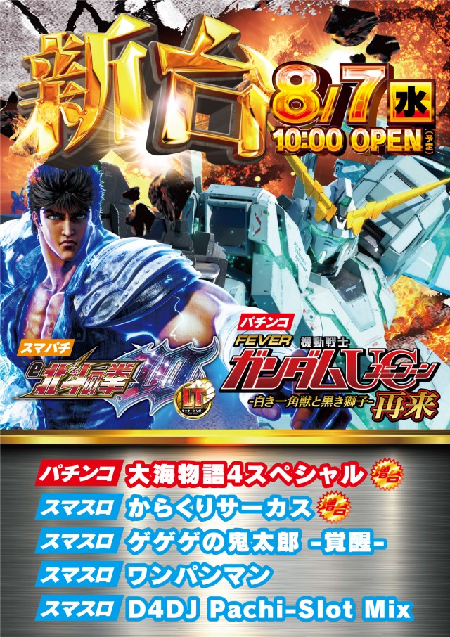 【新台入替】スマパチ北斗&ガンダムユニコーン2導入!
