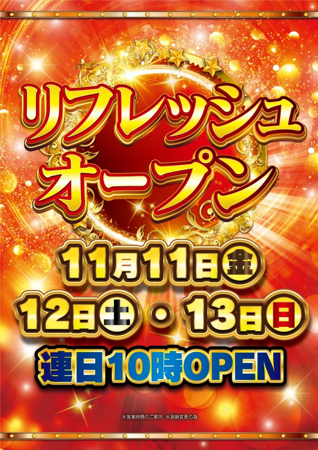 本日 11月13日(日)リフレッシュオープン!