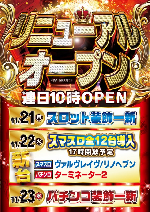 本日 11月12日(土)リフレッシュオープン!