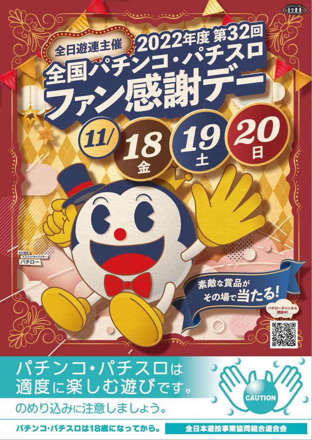 本日 11月18日(金)パチンコ・パチスロファン感謝デー!