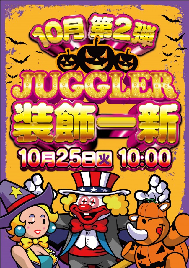 本日10月25日(火)ジャグラー装飾変更!10時開店♪