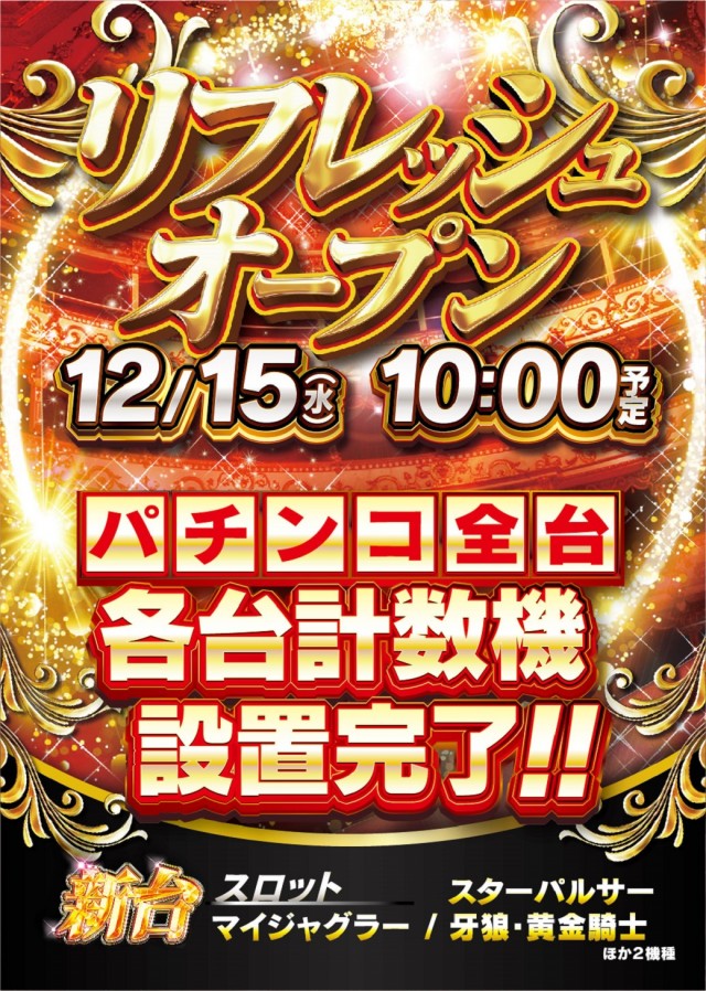 【リフレッシュオープン!】本日12月15日(水)10時開店
