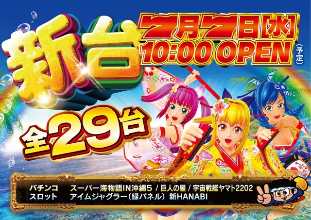 本日7月7日(水)新台入替~沖縄5・ヤマト・新ハナビ他導入!