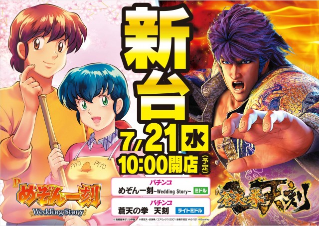 本日7月21日(水)新台入替!蒼天の拳&めぞん一刻導入♪
