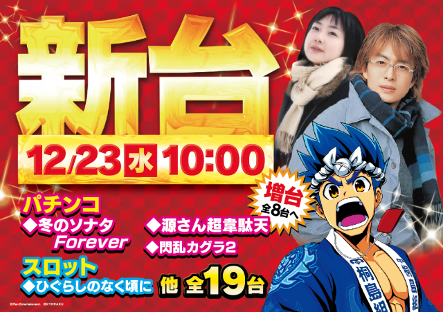 明日☆新台入替!源さん超韋駄天増台!他11機種導入♪