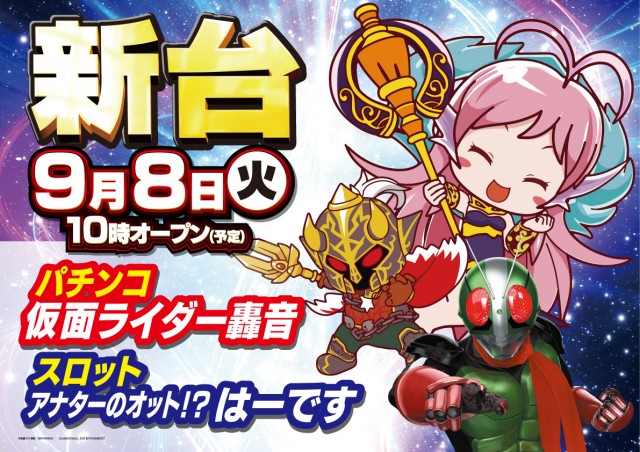 明日9月8日(火)新台入替!仮面ライダー&はーです 登場!