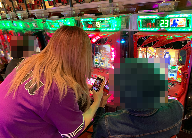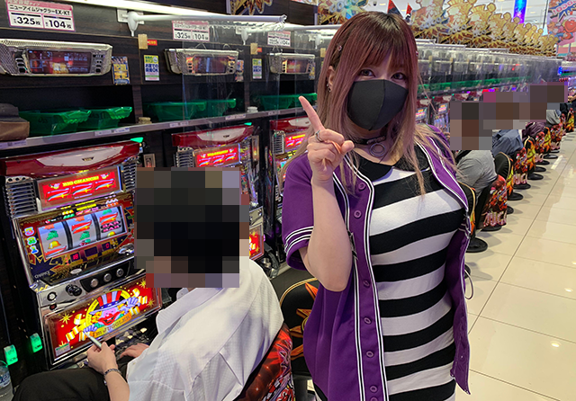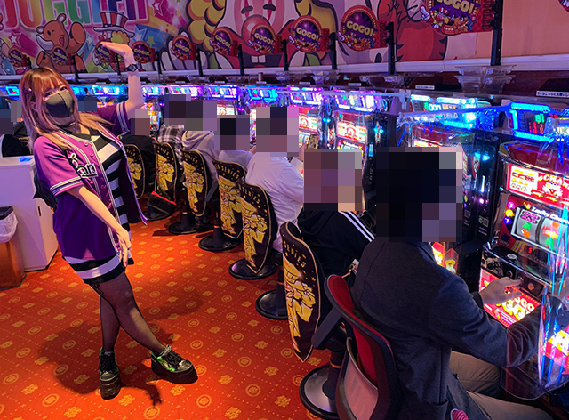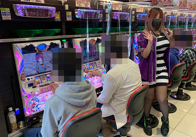ホール内をくまなくまわり、稼働状況などをチェックしていたアンジュちゃん。