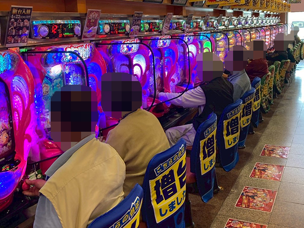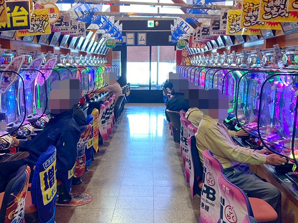 取材時は既に多くのプレイヤーが集結し、パチンコ・パチスロを問わずにぎやかな状況となっていた。