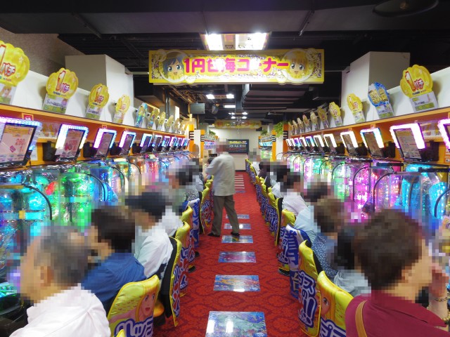 1円パチンコで遊技を楽しんでいる多くのプレイヤーも明るい表情。