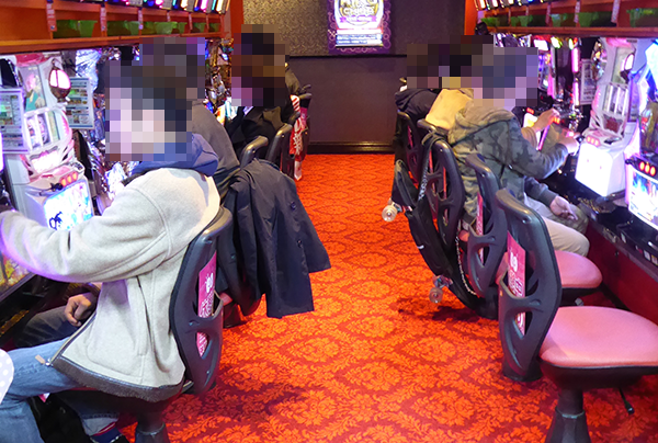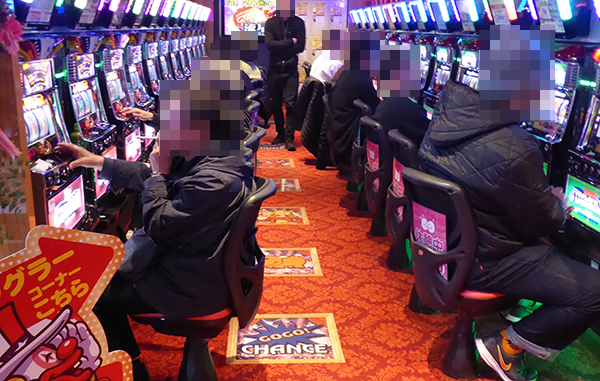 14時を過ぎた頃の20円パチスロにおいて、とくに活気づいていたのは「バジリスク~甲賀忍法帖~絆」。目をひくようなパフォーマンスを披露しているプレイヤーが多く、鮮やかな光景もみられた。