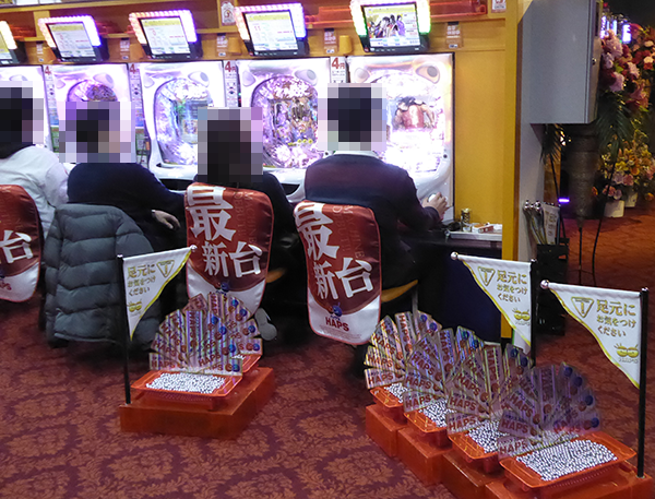 4円パチンコでは、新台の「CR花の慶次X~雲のかなたに~」が満席。機種の特徴を活かしているような姿がみられ、プレイヤーも大満足といった表情を浮かべていた。