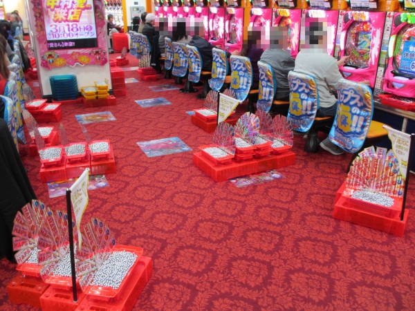 4円パチンコでは、「CRルパン三世~Lupin The End~」と「CRスーパー海物語IN沖縄4」が盛り上がっていた。時間が経つにつれ機種の性能をうまく発揮するプレイヤーが続出し、コーナーは明るい雰囲気に包まれていた。