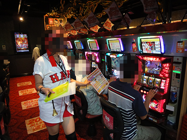 なかでも、ひときわ盛り上がっていたのが、1円パチンコの海物語シリーズと5円パチスロの「ミリオンゴッド-神々の凱旋-」。プレイヤーたちのうれしそうな表情が満足度の高さをあらわしているようであった。