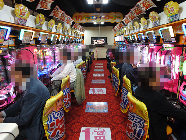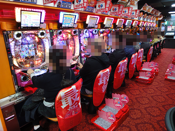 「バジリスク~甲賀忍法帖~絆」や「押忍!番長3」も盛り上がっており、シマ全体がたくさんのスマイルでおおわれていた。