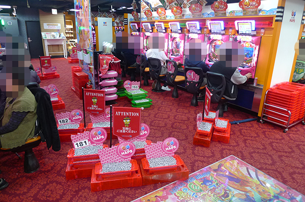 4円パチンコをうかがうと、「CRスーパー海物語IN沖縄4」や「ぱちんこCR真・北斗無双」にとびきりのスマイルを発見! 理想的な遊技をおこなえているためか、プレイヤーたちは楽しそうにハンドルを握っていた。