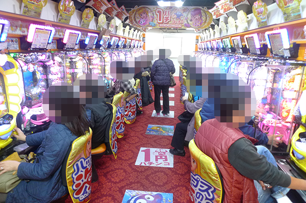 元気いっぱいなスタッフたちに迎えられホール内へはいると、大勢のプレイヤーが遊技を楽しんでいた。