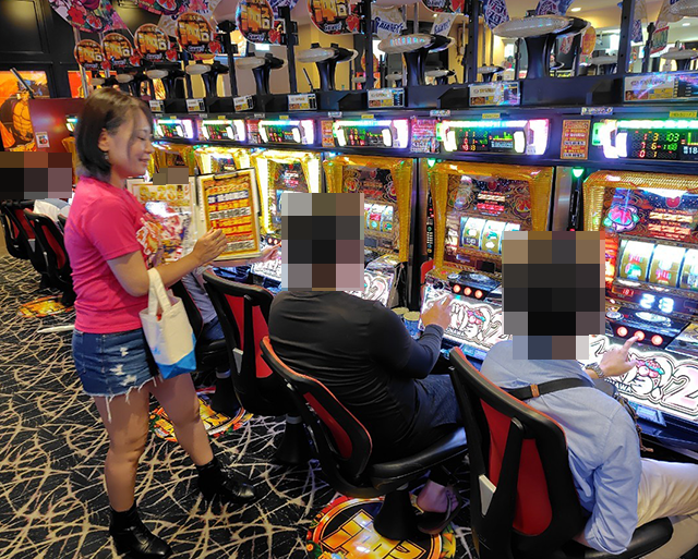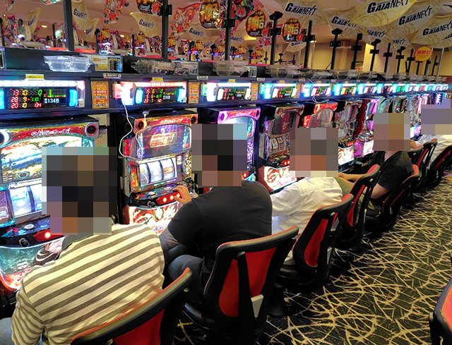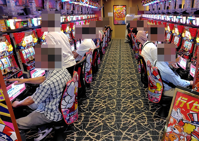 パチスロと同様に、パチンコでもプレイヤーは楽しそうに遊技中。