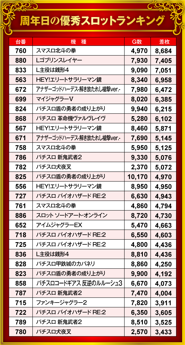 大盛り上がりの当日の出玉ランキングを見てみよう!
