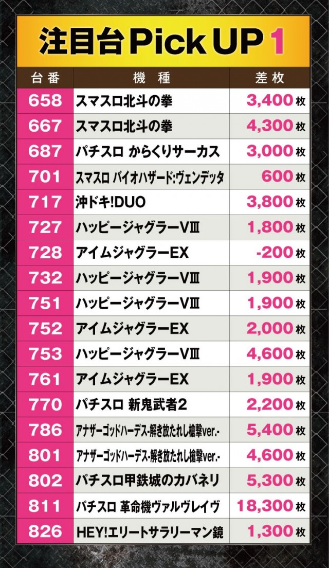 またジャグラーシリーズからも多くの好調台が誕生しており、プレイヤーたちは機種に関係なく納得の遊技ができていたようだ。次回開催時にはこれらを参考に、是非チャンスを掴んで欲しい。