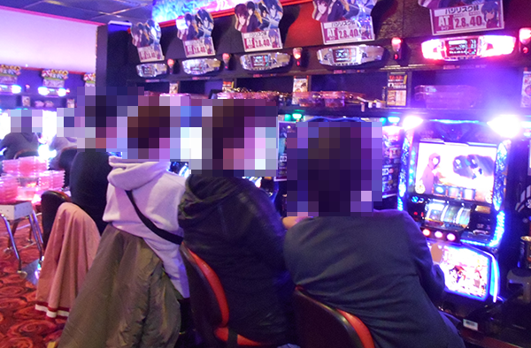 午後になっても、パチスロの「バジリスク~甲賀忍法帖~絆」が盛況。