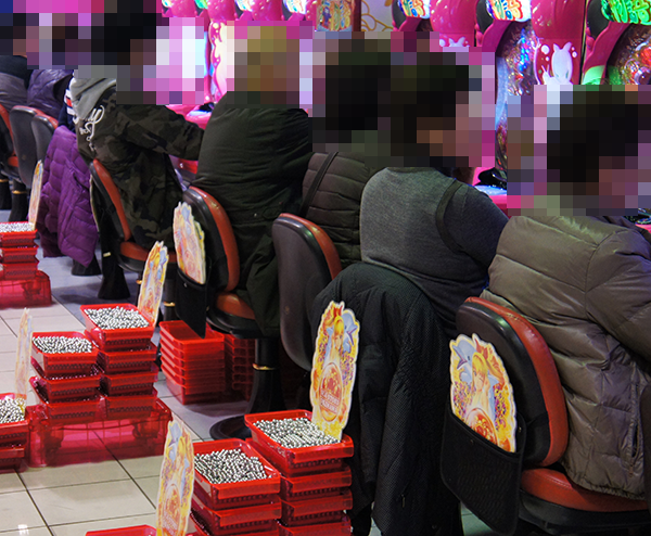 パチンコのにぎわいも大きく、「CR牙狼魔戒ノ花〜BEAST OF GOLD ver.〜」と「CR花の慶次X~雲のかなたに~」に笑顔が広がっていた。
